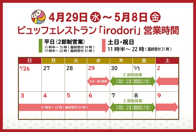 ビュッフェレストラン「irodori」からのご案内